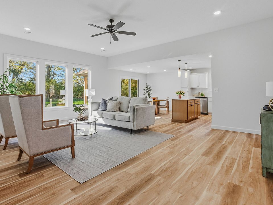 Beautifully designed all-one-level home nestled on a tree-lined lot that backs to the Lake of the Woods Golf Course. This brand new construction offers a functional and stylish layout with luxury vinyl plank flooring throughout—no carpet in sight. Enjoy peaceful mornings or relaxing evenings on the covered back porch with private views of nature and the fairway. Inside, you'll love the thoughtful touches, including a custom drop zone just off the garage—perfect for keeping shoes, coats, and bags neatly organized. Located just minutes from Battle Elementary and Battle High School, this home offers the perfect blend of comfort, convenience, and setting. Whether you're looking to downsize without sacrificing quality or want modern living in a serene location, this home is ready to impress.