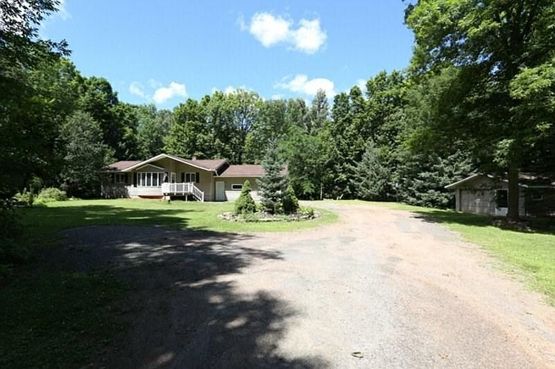 You will find privacy and wildlife on this 2.84 Acre property in Rib Mountain with 3 Bedrooms, 1.5 Bathrooms and 2 car garage (1 attached and 1 detached heated). Open and Bright best describe the spacious kitchen and living room with beautiful new bamboo hardwood flooring. Master bedroom has walk-in closet and 1/2 bath. Main bath has been updated with new shower, vanity and flooring. Large main level laundry and 2nd bedroom. Mound system is 4 years new.
