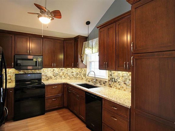 Charming Ranch home nestled nicely in a beautiful cal-de-sac. Fresh paint and new carpet in this home! Living room has a cozy slate fireplace and wood laminate floors. The kitchen has been fully renovated w/ custom cabinets w/ pull out shelves & soft close cabinets, granite sink, granite counter tops, glass back splash & a double oven. Master bathroom has double sinks, vanity and walk in closet. Custom closets in 2nd & 3rd bedrm. Vinyl siding & windows, quiet garage door opener. Sunroom & much more!