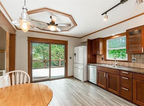 Close in, treed, secluded acre lot at the end of a cul de sac! Enjoy this park-like setting off any of 3 back decks! 2 YEAR NEW ROOF! Spacious Great Rm w/vaulted ceiling & flr to ceiling brick FP & rustic wood accents. Wall of tall windows lets in the sunshine! Cozy LL fam rm w/brick fp-has gorgeous fp insert. Eat-in Kitchen has stainless appliances! Inviting Dining Rm w/wood plank ceiling! Lg Master Ste w/walk-in closet, private bath, & PRIVATE access to deck. BSMT Bdrm/Office/Hobby Rm walks out to shaded deck.