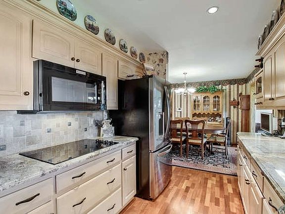 Well maintained brick ranch with over 2,300 sq ft of living space. Roof 4 yrs, all new windows (excluding picture window). Covered front porch. Terrazzo tile entry. Spacious living room with lots of natural light. Dining room with wood floors. Fully appl'd kitchen with wood floors, granite counter tops, pantry, pull out shelving, solid surface cooktop, double ovens, & built-in microwave. Amazing 20x11 sunroom (off the dining room) $35,000 with tile floors & sliding door leading out to covered patio area. Master bedroom includes double California closets & updated master bath with shower tub. Full finished basement features a large family room, office with double closets, bonus room with closet and entrance to full bath, laundry & storage. Wood privacy fence, covered patio with ceiling fan, mature trees, sprinkler system, shed, very nicely landscaped, 2 car garage. 1 year home warranty provided. All info deemed reliable but not guaranteed.