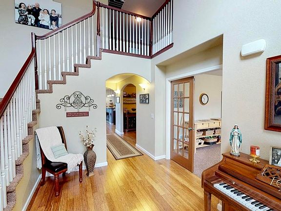 Great family home in a quiet neighborhood. Beautiful, well maintained 4 bed, 2.5 bath, Large master suite and bath. Walk in closets in 3 rooms, bamboo flooring downstairs, large kitchen with granite counter tops, living room off kitchen with gas fireplace, formal dining room, office/den off entry, sound proofed music room/man cave in oversized 2 car garage, large upstairs loft/family room, private well manicured yard, deck, concrete patio, RV parking, shed, enclosed patio with gas/wood fireplace. There is an amazing park with splash pads nearby. Check out our 3D Tour at https://my.matterport.com/show/?m=Xcu7L3g5hEP