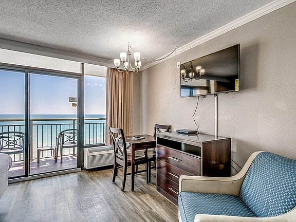 Incredible opportunity to purchase this fully furnished direct oceanfront efficiency condo in the Caravelle Resort! Located on the 14th floor, unit 1412 comes with fully equipped kitchen appliances, updated cabinetry, and granite countertops. Additionally, the bathroom has upgraded granite countertops and a tub/shower combo. Both beds are on the oceanfront side of the unit that also includes a sliding door to your oceanfront balcony with breathtaking ocean views overlooking miles and miles of sandy beaches. The Caravelle Resort offers the best amenities, including an indoor and outdoor pool, lazy river, kids water park, game room, onsite laundry services, and more! Located near all of the Grand Strand's finest dining, shopping, and entertainment attractions, and just a few steps to the beach. Whether you are looking for a potential investment opportunity or a vacation getaway, you won't want to miss this one! Call the listing agent to schedule a showing today!