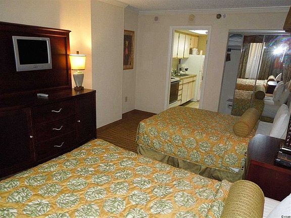 Great price for an oceanfront 1BR in the Caravelle Resort. Excellent location on 69th Ave N in Myrtle Beach, the Caravelle Resort has loads of amenities, including indoor/outdoor pools, lazy river, game room, exercise facility, oceanfront tiki bar, restaurant, parking attached to the building and much more. This oceanfront condo is nicely appointed with granite countertops in the kitchen and bath, flat screen TV's, and upscale bedding. Super value for the location, size, resort and income!