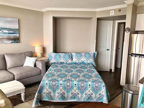 Beautiful 1 bedroom, 1 bathroom OCEAN VIEW condo with a full size Murphy bed in the living room located in the Caravelle Resort! Great ocean view from the large balcony on the 10th floor overlooking the pool. This unit is recently renovated, comes fully furnished, has stainless steel appliances, granite countertops and vinyl flooring. The bedroom comfortably fits a king bed or 2 double beds comfortably. The Caravelle Resort is known for its incredible amenities like its poolscape that takes up a whole block! Amenities include: a heated outdoor pool, indoor pool, hot tubs, a 3ft deep lazy river, a 1ft deep lazy river for kids, a waterpark, onsite restaurants, a spa, a fitness room, a game room, and a business center. On the beach enjoy soaking in the sun or enjoying the amazing fishing and shark tooth hunting. The Caravelle Resort is located on Ocean Blvd in the North part of Myrtle Beach in a quiet, residential area away from the crowds, but just minutes from all restaurants and attractions. Caravelle Resort is less than 10 minutes from local hotspots like the SkyWheel, Broadway At The Beach, and TopGolf! Come see this splendid unit in the Caravelle Resort today!