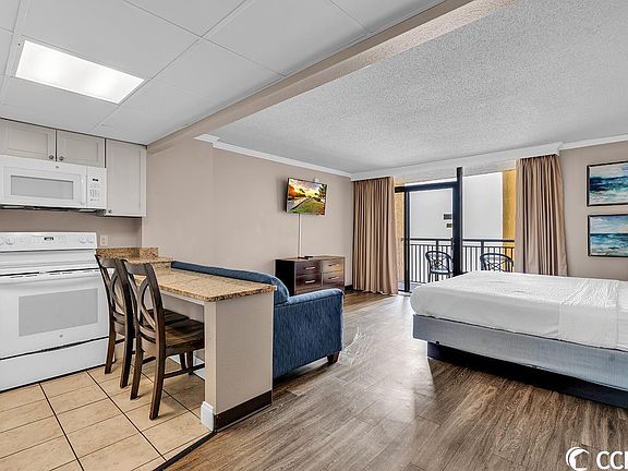 Get away and relax at this Oceanfront efficiency condo located on the 12th floor of the sought after Caravelle Resort. Views of the ocean from the kitchen, living or sleeping space, guests and owners alike love the privacy this unit offers. A large kitchen provides room for all your needs on extended stays and a large breakfast bar for additional space and seating. The floor plan is perfect for owners on an extended stay or rentals with an additional sleeper sofa available. The entire building was renovated in 2018/2019. At that time, this condo received a complete makeover of kitchen, bath and all furniture. The resort has numerous amenities for you to enjoy, including but not limited to: indoor and outdoor pools, lazy river, kiddy pool, splash pad, rooftop pool and hot tub, a roof top tanning deck, as well as a tanning lawn! There is a fitness center, game room and onsite Tikki bar that offers drinks and small eats to enjoy pool side. The Caravelle Resort is located in a laid-back residential section on the North end of Myrtle Beach and the "Golden Mile". Only a short drive from some of the best restaurants, entertainment, golf and shopping that Myrtle Beach has to offer including: locally owned Crave Italian Restaurant, The Carolina Opry, Pirates Voyage, Barefoot Landing, and Publix and Food Lion shopping plazas.
