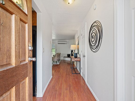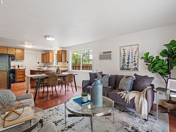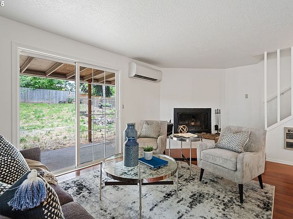 Enjoy the sweet town-within-a-city feel of St. Johns from this comfortable home tucked at the end of a dead-end street. The large lot has the potential to become your very own urban homestead with established fruit trees, raised beds, room for a greenhouse, and maybe even some chickens. Practical layout inside features a huge living room with corner wood-burning fireplace and door out to the covered patio. Open kitchen with breakfast bar so you can stay in the mix while cooking. Three bedrooms conveniently located together upstairs. All appliances stay, including washer and dryer in the attached one-car garage. Fresh interior paint throughout, new carpet on the stairs, plus a newer heat pump! Explore the vibrant community and popular local businesses on Lombard, breweries, Daydreamer Coffee, and the lively Saturday Farmers Market. [Home Energy Score = 7. HES Report at https://rpt.greenbuildingregistry.com/hes/OR10239297]