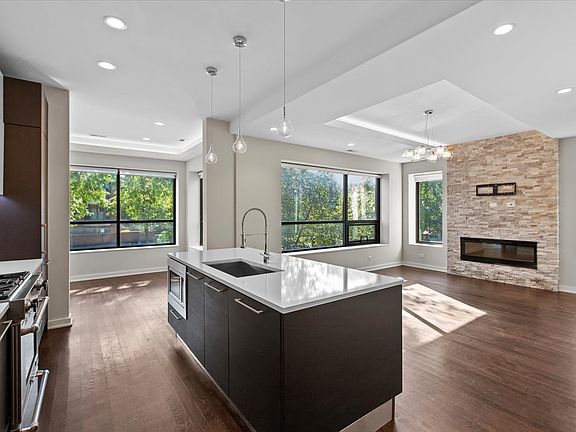 This east facing luxury unit in Roger's Park is one of a kind. Just a short walk to the Lakefront, Parks, and more in this boasting sun filled unit. You will find a kitchen with custom cabinetry, Jenn-Air appliances, and a large kitchen island. The living area has recessed and custom lighting, a dining large open area, and tons of sun exposure with it's large windows! This stunning unit also features in unit laundry, and a custom master ensuite in the primary bedroom. There is much more to be seen in this amazing and luxurious unit, and parking is available on-site.