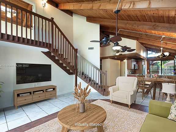 Rarely available bright townhome located on a large corner lot in Palm-Aire Villages! This spacious 3 Bedroom/2 Full baths home has dramatic chalet-like vaulted ceilings with beautiful views. Updated & move-in ready with an open kitchen featuring stainless steel appliances, beautiful granitite counter tops, & quality cabinets. The generously proportioned open layout also has a grand dining area. The primary bedroom suite features new double sinks and vanities in a generous-sized bathroom with an adjoining room for the potential of many uses. The inviting and private landscaped fenced yard has a high-quality composite Trex deck & a patio area with lots of room for unlimited possibilities. This beautiful tree-lined street is convenient to I-95, Turnpike, & Fort Lauderdale Executive Airport.