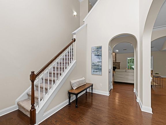Rare opportunity in highly sought after Avocet in Holly Springs! This home boasts BOTH a FIRST FLOOR OWNER'S SUITE & GUEST BEDROOM with FULL BATH on .26 acre private lot. Spacious family room with vaulted ceiling & stack stone fireplace is at the heart of the home. Main floor also offers a dining room & breakfast area with easy access to kitchen with center island, granite countertops & ss appliances. Open flow with arched doorways makes entertaining a breeze! Upstairs you'll find 2 bedrooms with generous walk-ins sharing a Jack & Jill bath. Relax or play in the spacious bonus room with storage closet & built-ins. Enjoy morning coffee on the front porch & an evening meal on the screened-in porch! Patio pad with convenient gas grill hookup.Tree lined backyard is fully fenced with striking natural views. Updates -Roof & gutters 2023, carpet & paint 2023 & fridge 2024 conveys. A quick walk to pool, playground, walking trails, soccer field & stocked pond. This community is a true gem! Less than 10 mins. to shopping.