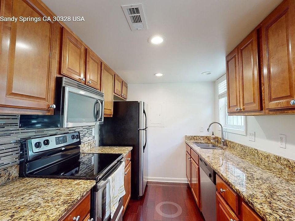 AWESOME 2BR/2BA TOWNHOME IN SANDY SPRINGS, GATED COMMUNITY. This home has 2 floors and lots of stunning natural light. The entry level includes the living room, dining room, kitchen, half bath and laundry. The beautiful kitchen comes with Granite countertop, trendy backsplash, a full Stainless Steel appliance package, and lots of cabinets. All flooring is Hardwood. Upstairs boasts both spacious master bedroom and 2nd bedroom. Both are spacious, and they come with their own full bathrooms. Bathrooms are updated with nice tiling and modern light fixtures. This townhome has a private back patio, laundry room, and two private parking spaces. Located in a gated community, Highgate @ Sandy Springs has wonderful amenities. It offers a great entertainment spaces with beautiful pool, club house, and pergola. This community is close to everything. Just minutes away from Trader Joes, Whole Foods Sandy Springs shopping, Perimeter Mall, and lots of great eateries. Complex is close to Highways 285 & 400. SHOWING INSTRUCTIONS: LHA MANAGEMENT is the only authorized landlord -- We don't advertise on Craigslist --