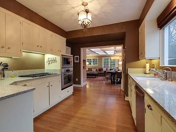 Classic home with stunning updates. From the grand drive up to the attention to detail, this home encompasses style and class, yet is easy to live in. The colonial style and white pillars lead to an entry way flanked by a formal dining room with stylish wallpaper and a lit glass built-in China rack, as well as the formal living room boasting a gas fireplace and a doorway out to the side patio - perfect for entertaining or private outdoor dinners. The living room leads to a light and bright office that has built-ins and views out to the gardens. There is a full bath located between the office and the kitchen featuring subway and octagon tile. The kitchen itself is attached to the family room, creating a large great room with beautiful architectural amenities including up lit framework and large skylights that provide light all year. There are French doors leading to the back patio, making for easy indoor/outdoor living. The kitchen is large, with granite countertops, stainless appliances and a gas range. The upstairs holds the bedrooms, with a master bedroom that has built-ins, a gas fireplace and a private deck. The lower level has a very stylish bedroom that opens into a well done work out room. There is plenty of storage and a one car garage.Walking distance to Eastmoreland golf course, the best trick-or-treating in the city, and Reed College. Biking distance to Sellwood, including restaurants, movie theatre, coffee houses and shopping. Minimum 1 year; possible longer