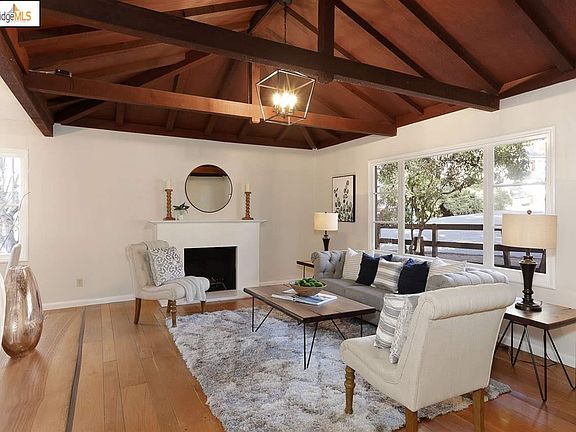 Nestled amongst the trees on a large corner lot, this charming 1940's 'cottage' style level-in home features two bedrooms, one bathroom, a beautiful living room with dramatic vaulted wood beam ceilings, a large picture window that looks out to the front garden, random plank wood floors and a sunny eat-in kitchen and laundry room. The woodsy large garden is perfect for relaxing, gardening and play. The spacious garage and long driveway offers extra parking as an additional bonus! Located minutes to Montclair Village, schools, popular Regional Parks for hiking and biking and HWY 13-24.