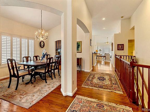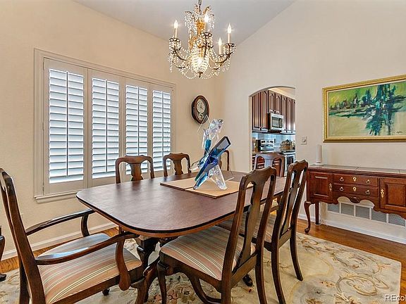 This is it! A beautiful executive ranch home with main floor living and views of Grant C reservoir. The interior features have been meticulously maintained and include extensive hardwood flooring, a bright and cheerful upgraded kitchen with vaulted ceilings, granite, and 42 inch cabinets, stainless steal appliances and a breakfast nook that opens into a family room, formal living and dining spaces all complete with plantation shutters. The home's huge master bedroom is complete with a 5 piece bath with a jetted master tub. This ranch style home exudes natural light with a southern exposure to the front, several windows, and skylights. The home also features safety bars for the extra peace of mind and have been installed in the master bathroom and outside the door to the patio for easy accessibility along with exterior railings to front patio and garage. Enjoy views of the lake and front range on the back patio spaces under the shade of the electronically operated awning and full length screens around the patio. A maintenance free home in a lovely gated community with new interior paint, new roof, pre-wired for speaker and security systems, built-in garage storage and epoxy treatment on garage floor, astroturf rear yard, this home is truly turn-key! Chair lift from main floor to basement is currently installed and negotiable.