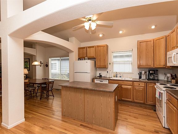 Welcome to this Beautiful Ranch home in the highly desired Poppy Hills gated community! Lush, private fenced backyard decorated with mature trees is perfect to entertain guests and enjoy Colorado summer evenings on the large two-tier TREX deck. This home features a spacious main floor master bedroom with 5 pc en suite bath & vaulted ceilings that extend throughout the main, including living and dining areas. Plentiful windows bring in natural light. Hardwood floors throughout entry-way and kitchen. Kitchen features quartz counters with an island with breakfast bar. The enormous unfinished basement offers plenty of room to expand. Perfect, low maintenance home as HOA provides front yard care, snow removal of driveways, walks and streets. Enjoy the Grant Ranch amenities including a pool, clubhouse, and being within walking distance to the lake. Don't miss this amazing opportunity!