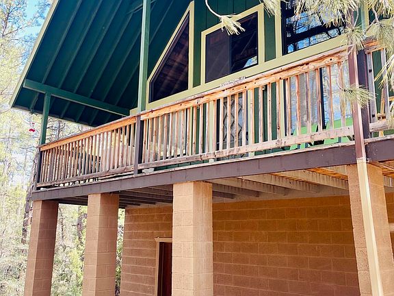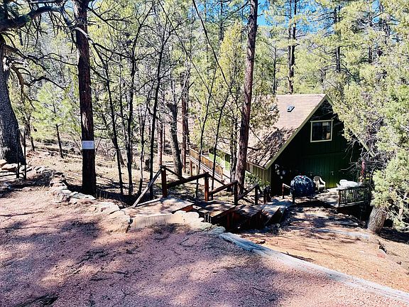 Welcome to this charming A-frame cabin nestled on 1.1 acres of picturesque Pine, Arizona, surrounded by the natural beauty of forest land and a small creek running through the property after a good rain or snow. This cozy cabin boasts two bedrooms and two bathrooms with an oversized loft and sitting area. As you enter the cabin, you will immediately be greeted by the warm and inviting ambiance of the open living area with amazing views. The living room features vaulted ceilings with exposed wood beams, a fireplace, and large windows that allow natural light to flood in and provide stunning views of the surrounding forest. The half acre lot next door could also be purchased if desired. Adjacent to the living room is a fully equipped kitchen, complete with modern appliances and new flooring. The cabin's two bedrooms are situated on the main level with one bathroom.