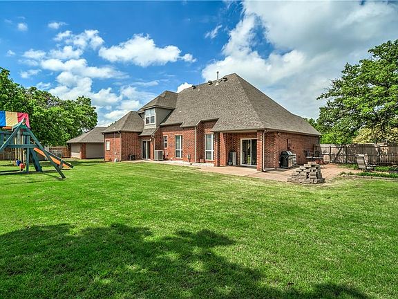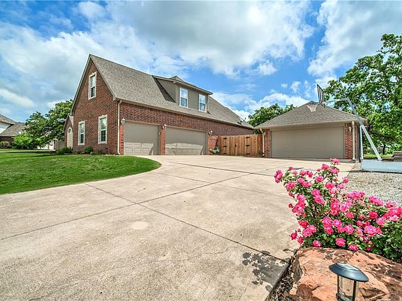 This meticulously maintained home is situated on the corner lot of a quiet cul-de-sac with a beautiful view of Oaktree national golf course. This home features a versatile floor plan with 4 bedrooms, 3 bathrooms, a bonus room, and study. The large kitchen has stainless steel appliances, granite countertops, a huge pantry, and tons of counter space. The Spacious master suite features a large bathroom with his and her sinks, a jacuzzi tub, and a large walk-in closet w/ built-ins. Over half of an acre lot! The backyard is fully fenced and has tons of space for entertaining. This property features a huge attached garage with an in-ground storm shelter, a separate detached 2 car garage/workshop, and an optional space for RV parking. Convenient location without being in the city - be in downtown Edmond in 10 minutes, I35 in 10 minutes, & Downtown OKC in 30! Edmond Schools and Logan county!
