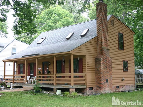 Convenient location only 15 minutes from downtown, West End, etc. Near Hull Street, Turner Road and Chippenham Pkwy. in Chesterfield County. Close to schools, shopping, restaurants, etc. Two story, cedar "Open Loft" Cape Cod. Dramatic open cathedral ceiling living room, 3 bedrooms (2 bedrooms on 1st Floor!) plus large master bedroom upstairs. Large open loft area at top of stairs can be used as 4th bedroom, home office, den, office, etc. Two full baths (one up and one down); heat pump/central air. FENCED BACK YARD! Just had the driveway paved this year. Just finished restaining the entire exterior and replacing most all of the windows with new, maintenance free, easy tilt vinyl windows. We also replaced the front door and storm door. DOWNSTAIRS: Living/family room with open cathedral ceiling. All brick fireplace w/glass fireplace doors, ceiling fan. Two skylights. Wood type laminate floor. Large eat-in kitchen area with walk-out bay. Range, dishwasher, garbage disposal and refrigerator. Bar/Peninsula with cabinets. Laundry closet with washer/dryer hookup in downstairs hallway (washer/dryer not provided). Two downstairs bedrooms with mirrored closet doors. both downstairs bedrooms and common hallway have new laminate (simulated hardwood) flooring. Full bath with tub/shower combo and ceramic tile floor. UPSTAIRS: Large open loft room overlooking downstairs living/family room. Lots of light, with awning windows and skylights. Can be used as sitting area, office, den, playroom, or even as 4th bedroom. Master Bedroom with open cathedral ceiling, large skylight, accent awning windows, attic access storage, ceiling fan, etc. Nice large bedroom. Full Master Bathroom with shower. Bathroom adjoins both master bedroom and upper loft room. OUTSIDE: FENCED back yard. Full front country porch. Aggregate front sidewalk. All New, Large paved driveway. Fairly large custom built rear deck. Large, level yard; corner lot. Established neighborhood. RENT: $1,250/month Minimum One Year Lease. (Note: this home is for rent only; the home is NOT available for rent-to-own, or Govt. program Section 8). Minimum one year lease. SECURITY DEPOSIT: $1,250 (or more, depending on circumstances such as pets, credit, etc). Fully-housebroken Pets will be considered, and will require an additional pet security deposit and/or monthly fee. PLEASE NOTE: Credit reports will be pulled; applicants must provide valid social security numbers, residence history, employment history and income verification. A non-refundable application fee of $35 per adult name on the application will be charged to cover the cost of the credit reports and processing. Contact: Bryan Ray Office Phone - (804) 275-8698 Cell/Text Phone - (804) 307-3755 email address - bryanray@comcast.net