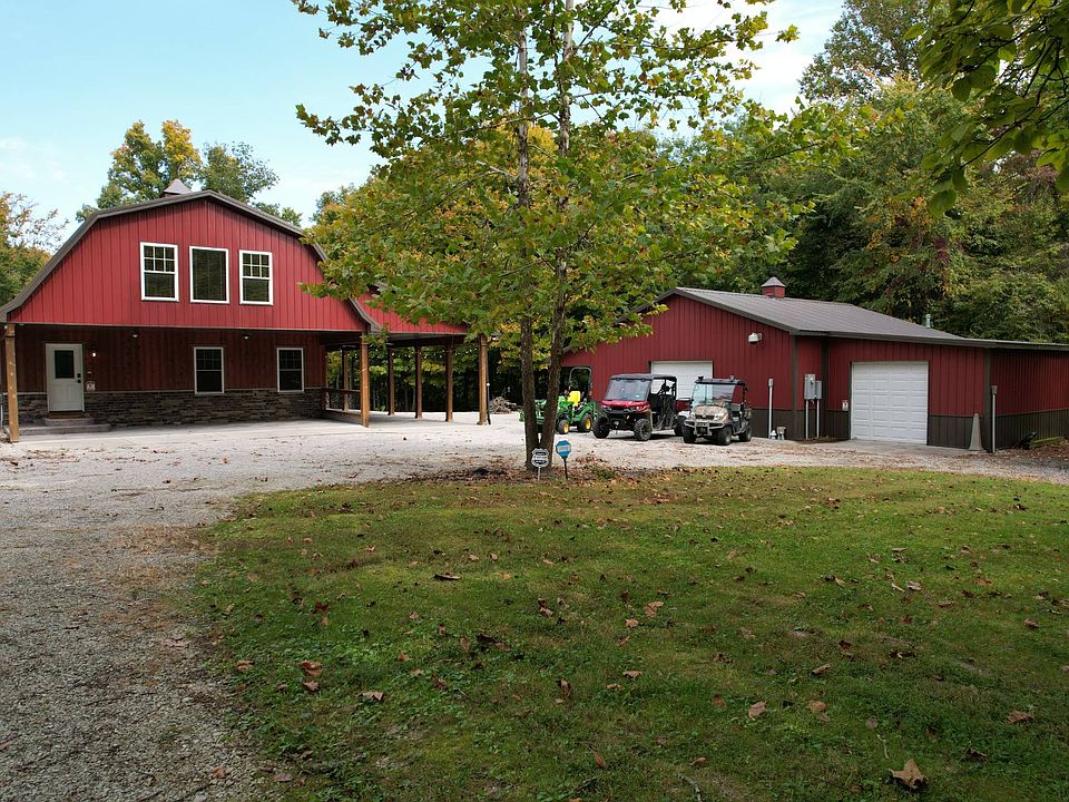 A turnkey property that features 164 Acres and a beautiful barndominium and more in Owen County Indiana for sale. This property is like a dream come true. Gorgeous barndominium home with fully finished basement providing over 4600 sq ft of living space. This includes 4 bedrooms, 4 full bathrooms, jacuzzi room, covered porch and more. Tastefully decorated with both modern and rustic decor throughout. Dont miss the 2 barns, 2 cedar cabins, boat house, 4 ponds, and road frontage on the North and South Side of the property. Less than an hour from downtown Indianapolis. Features of the home include: Completely furnished Over 4600 sq ft of living space 4 bedrooms, 4 full bathrooms Custom Kitchen with GE Monogram custom professional gas range with 4 burners, GE Monogram Refrigerator, GE Dishwasher, GE Microwave. Custom Schmidt rustic hickory cabinets, Blanco Double sink bowl Finished basement with pool table, TV entertainment area and another large room that could a great bunk room Large main level laundry room Nice breakfast bar Dumb waiter in the hallway (Butler Buddy) Large sauna room with fireplace with amazing view of the property Large covered porch along with covered car port 1000 gal propane tank for the house plus Cummins back up generator Fiber hookup Features of the Pole Barns: Pole Barn #1 35x30 with a 30x16 workshop attached, along with a covered porch, all concrete floors Full bath room, Kitchen, Living area, Mitsubishi Heat, water, 200 gal propane Pole Barn #2 47x34 1- 10ft door and 1- 12ft door Concrete floor, lean to off the back Features of other buildings: 2 Cedar Cabins both are 19x11 on features an open from porch the other a screened in porch, both have elect ran to them Boat House: 23x17 decking around the inside for ease in and out of your boat, along with a 23x17 covered porch to fish from or enjoy the amazing view Features of the Property: 164 total acres Over 2 1/2 miles of trails Road frontage on the North and South side of the property Over $100k of timber on the property 4 ponds that are fully stocked and managed Possible Pasture area on the North side of the property Topography is rolling hills Excellent hunting and recreational opportunities 2 Fire pits 2 docks Two ATVs.(Kobota and 6 seat Can Am) John Deere Tractor with all implement attachments. Very seldom does a place like this come along, a complete turn-key operation with furnishings, toys, and more.