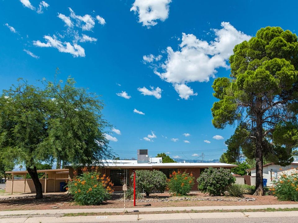 A must see!! Wire-cut brick home with workshop and pool on corner lot. Spacious family room with plank & beam ceilings, formal living room & large laundry room. New stainless kitchen appliances, new counter tops and freshly painted cabinets. New interior paint, new carpet and wood-like vinyl in bathrooms/laundry room. Covered patio with pool and grass playing area. One car carport with additional parking on this almost 1/4 acre lot. Separate workshop, too! This neighborhood-Terra Del Sol offers a community pool with a swim team too!