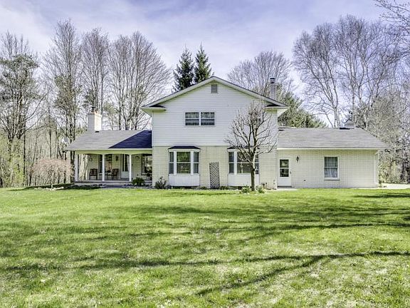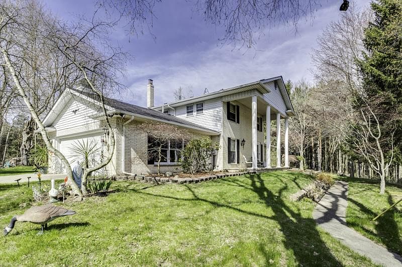 Executive-Style Home nestled in the Woods close to Lake Huron & Delaware Park! Experience the seclusion this 4.34 Acre parcel offers along with a spacious 4 Bedroom, 3 Bath, 2090 sqft home! You will love the wood burning insert in the Living Room and the bay windows in both the Eat-in Kitchen &Dining Rooms. Main Floor Bedroom, Laundry, & Full Bath! Upper Master Bedroom with loads of closet space, private Bath & Powder Room! Two Additional Upper Bedrooms & a 3rd Bath! The partial Basement boasts a spacious Family Room plus a large Bonus Room/Office/Bedroom! Beautiful North & South Side Covered Porches! 24'x24' Attached 2 Car Garage PLUS an additional 24'x32' Detached Garage! Private location on the west side of Lakeshore Road. Less than 1 mile to Delaware Park and 2 miles to the boat launch in Village of Forestville!