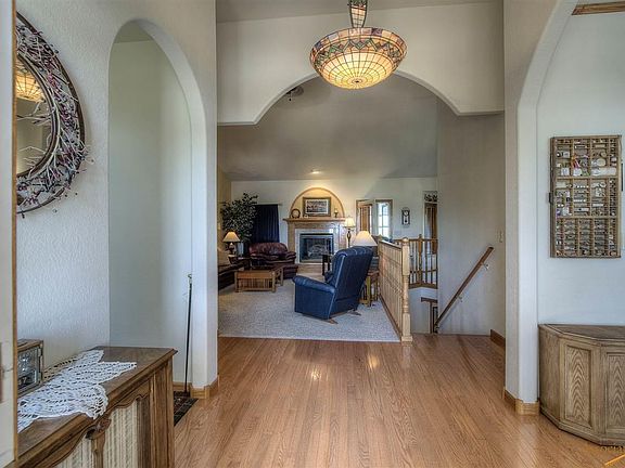 Exceptional home in the coveted Red Rock Estate subdivision. This home is located on the 9 hole fairway of Red Rock Golf Course. The setting of the course allows the home to have an unobstructed view of the golf course and the hills beyond. The multiple levels of decks and patios give you all kinds of options to enjoy your home and the outdoors. There is a very comfortable enclosed sun room just off the kitchen and living room. There is another deck that previously held a hot tub and a private patio off the garage. Speaking of the garage, this is a car persons dream garage. Owner has used a lift (which is negotiable) to fit even more cars in. The back of the garage has a golf cart space and it's insulated and heated. The home faces southeast so the driveway melts rapidly. The home features a huge master suite with a door to the deck and a large closet and master bath. There is a formal dining room off the kitchen and an office space that could be a 5th bedroom if needed.