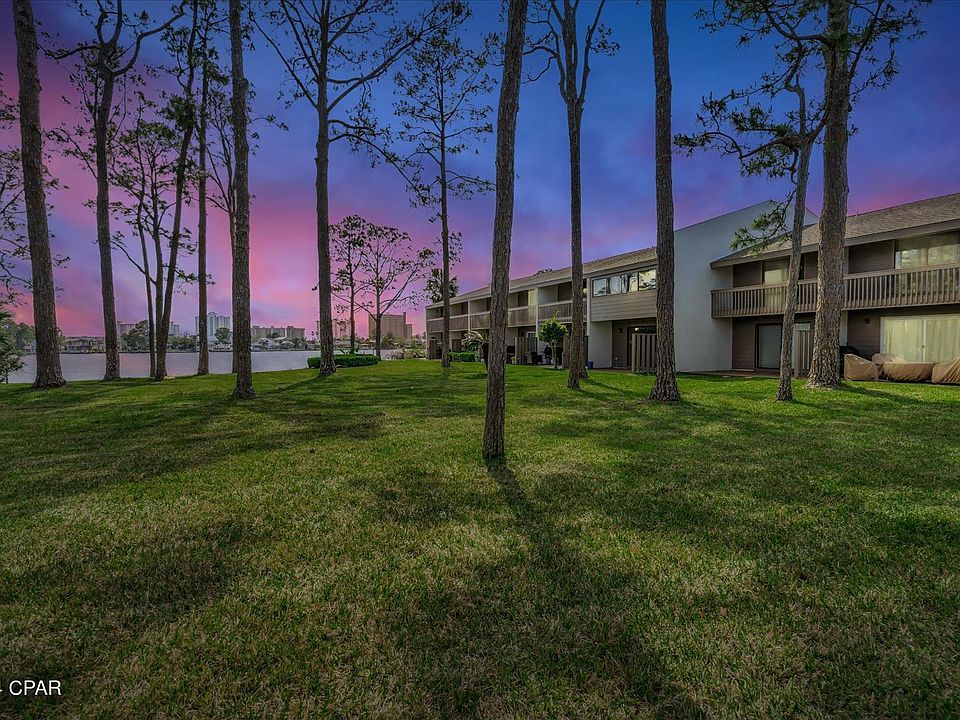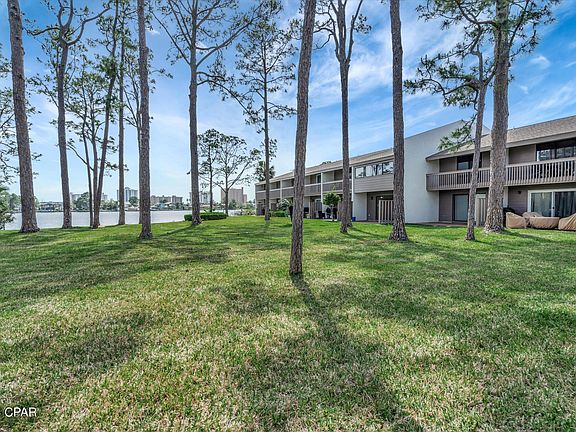 CURRENTLY UNDER CONTRACT, SELLER WILL CONSIDER BACKUP OFFERS. Nestled on Grand Lagoon this serene waterfront complex has a park-like setting with mature trees, a new dock, community pool, tennis and is a quick drive to the beaches, St. Andrews State Park, waterfront restaurants and more. Offering 2BR/2.5BA with each bedroom having it's own bath plus lagoon views from master balcony, it is a diamond in the rough...ready for you to make it your own! Lagoon views from the patio and lots of shade offer a quiet retreat for a second home or primary residence. HVAC 5 years old.