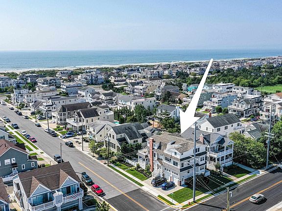 This meticulously constructed corner estate, completed in 2020, is expertly finished and furnished. Ideally located just a short distance from the beach, this home seamlessly combines spaciousness, privacy, luxury, and ample storage. The expansive layout boasts two generous entertaining areas, each featuring large decks that overlook the rear yard pool. This coveted feature of stacked entertaining decks is generally only found on NE and SE corner lots, as well as bayfront properties. Upgraded millwork is evident throughout this home, with Douglas Fir interior doors, an extensive wainscoting package, and custom baseboard and trim moldings. A sense of quality and style immediately greets your guests upon entering the home, where the aforementioned millwork and a brand-new stair runner elevate the entry way. The first-floor family room has a massive sectional sofa and a well-appointed wet bar that includes multiple refrigerators, an ice maker, and beautiful cabinetry. Sunlight pours into the room through walls of windows, creating a warm and inviting atmosphere. A door leads out to a covered first-floor deck that overlooks the rear yard entertainment area. Anchored by a sizable pool, this outdoor space offers chaise lounge seating, a fire pit, techo bloc pavers, walls of arborvitae, and low voltage landscape lighting. Should you desire even more room for entertainment, this space can easily be expanded toward the street, adding an additional 10 feet of functional space. Completing the first floor are two spacious bedrooms, two full bathrooms, and a laundry room with access to the rear yard. The second floor great is an entertainer's dream. Soaring ceilings add a touch of drama to the living room, which centers around a gas fireplace, with stunning brick accents, and elegant furnishings. The chef's kitchen is equipped with top-of-the-line appliances, quartzite countertops, custom cabinetry, and a striking backsplash. Both the dining area and living area provide access to the second-floor deck, which is partially covered and partially screened-in for added comfort and privacy. The property to the east is a right-side up home and the property to the south has Ocean Drive facing second floor decks, leaving the second-floor deck of this home feeling as private as you will ever find. The rear of the second-floor houses two additional bedrooms, each with its own ensuite bathroom, along with a convenient powder room and a pantry. Ascending to the third floor, you'll find two primary suites, both featuring double vanities, exquisite marble tile, and access to private decks. These rooms also enjoy the convenience of a hallway wet bar, complete with refrigeration, a sink, and additional storage space. Additional highlights include a two-car garage, a four-stop elevator, and a maintenance free exterior. Positioned just one cross street away from the picturesque south end of Avalon beach, this property instantly represents one of the best values on Seven Mile Island. Schedule your appointment to preview this spectacular home before it is too late.