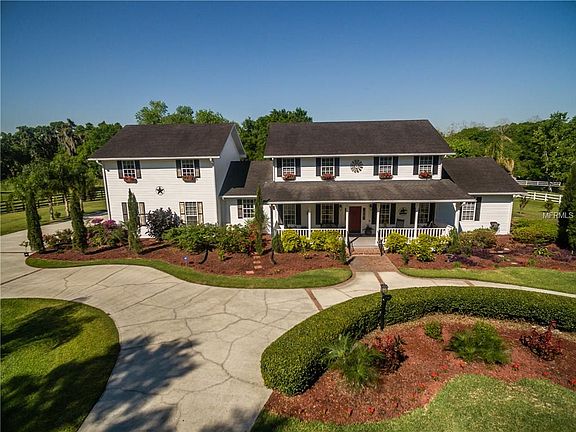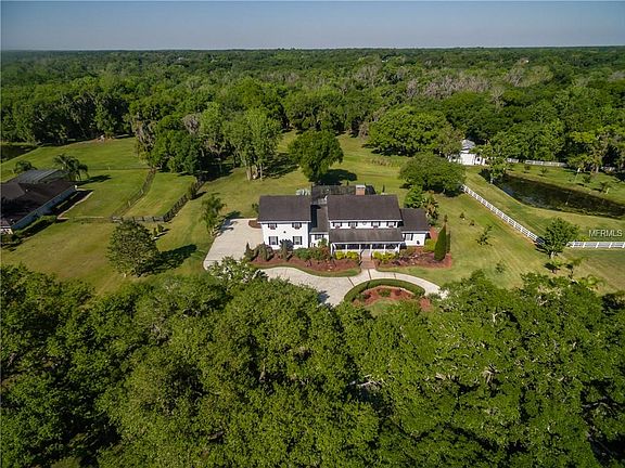 SPECTACULAR "Dallas Meets South Lakeland" traditional 5br/4ba/3cg 4237 SF CUSTOM estate on SPRAWLING 4+ manicured ACRE EQUESTRIAN property in prestigious Poley Creek. Backs up to conservation on dead end street, POOL & SPA, as well as separate full living quarters. Beautiful country estate w/easy access to SR60 & I-4 this home truly blends the best of urban & rural. The main house is LOADED W/UPGRADES & is 'turn-key luxury'. Gourmet kitchen w/remarkable custom wood cabinets features HIGH END STAINLESS APPLIANCES, QUARTZ counters, large island w/storage & wine rack & walk-in pantry. This stunning home is loaded w/LAVISH FEATURES & IMPECCABLE ARCHITECTURAL DETAILS, including: soaring high ceilings, White Oak HARDWOOD flooring & gorgeous crown molding throughout. Separate formal dining & living rm or large office w/barn doors, & spacious family rm w/brick wood burning fireplace & french doors opens to large screened lanai & heated pool. The 1st floor master features walk-in closet & luxurious en-suite bath boasting double vanity, claw foot tub, separate water closet & shower. Much of property is fenced for horses. The perfect mother-in-law suite features full kitchen w/granite, living area, bedroom, bath & office space & is located above huge side entry 3 car garage w/circular drive. Large custom laundry room w/laundry chute & sink. County water w/Culligan water system & reverse osmosis. On septic. Well for irrigation. Tons of room upstairs for family or guests, with 3 full bedrooms plus a large bonus room.