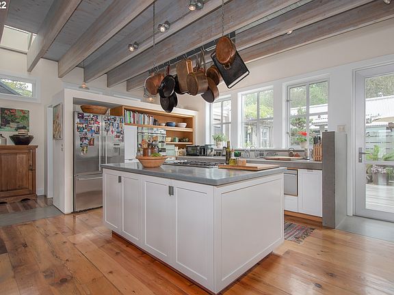• Features: Bookcases, Deck, Fireplace, French Doors, High Ceilings, Reclaimed Material