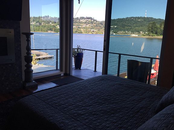 This is luxury living on the River! Enjoy stunning river and area views from the 3000 sf of decking at this very well appointed and fully furnished home! Don't let me sugar coat this. You will still have lots of decisions to make on a daily basis: such as: should I take the Kayak out BEFORE I have coffee on the deck or AFTER? Should I get in the hot tub now or wait for the guests to arrive? Life can be tough. The home has amazing touches: motorized sun screens, gas fire-pit on the back deck; Weber BBQ; Kayaks included; oh, and a VIEW All utilities are included in the rent; you just get your own cable/internet package. The home is at the end of an exclusive moorage at the Oregon Yacht Club in close in SE Portland.