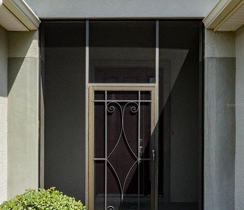Deep space to back neighbor. This corner lot Sheridan model home is located in the much sought after gated 55+ golf community of Stone Creek. Home features 3 Bedrooms, 2 Baths, 2-car Garage, split bedroom floor plan, large neutral tile flooring set on point throughout main living areas, neutral carpet in bedrooms, custom blinds, screened front entry, screened Lanai, Maple cabinets and vanities, Corian counters, Laundry room, utility sink, and more. Enter the Foyer and you find the very spacious Great Room forward. The Kitchen and Dining area are to the right in this open concept home. A triple slider and a large double slider at the back of the Great Room open to an expansive screened Lanai under roof. The Owner's Suite is located at the back left of the home and it features -
