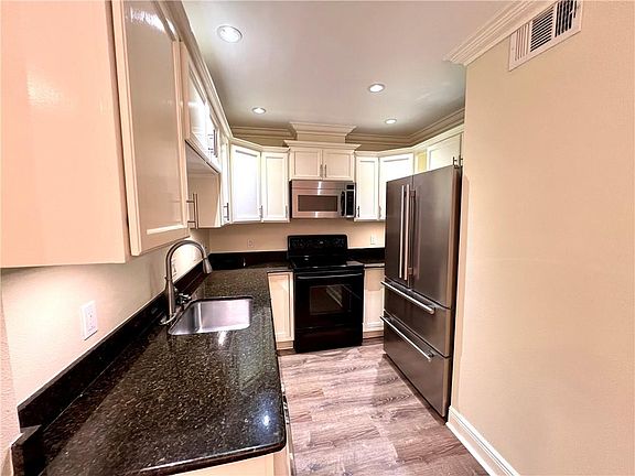 BACK ON THE MARKET DUE TO FINANCING! This 1 bedroom, 1 bath condo features elegant crown molding and recessed lighting throughout. The kitchen is designed for functionality with ample storage, granite countertops, and under cabinet lighting. It includes an all-in-one washer/dryer for convenience. The bathroom boasts a tiled walk-in shower. Vinyl plank flooring flows throughout the unit, and the bedroom offers two closets, including a spacious walk-in. The assigned parking spot is in close proximity to the condo. Residents can enjoy community amenities such as a pool and a recreation room. Note that this property is for owner occupants only.
