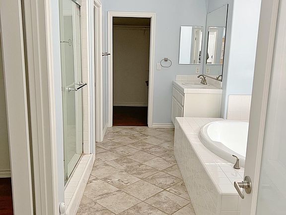 This former model home in Parkview Meadows has 3,414 square feet of living space with 4 bedrooms and 3 bathrooms. Updated kitchen includes large center island with white quartz top, modern white cabinets with soft close drawers, stainless steel appliances, and granite countertops. Wood floors throughout formal living and dining rooms. Large family room with built-in entertainment center and fireplace. Spacious primary bedroom conveniently located on main floor features lots of windows for natural light as well as plantation shutters. Primary bath is large featuring separate vanities, jacuzzi tub, separate tub and shower and two large his and her walk-in closets. Main floor also features two additional bedrooms, full bath, plus a large office with wood floors and plantation shutters. Upstairs features an oversized bonus/game room with attached secondary family room and built-in entertainment center. One additional large bedroom complete with full bathroom completes the upstairs. Indoor laundry area with sink. Two car garage plus one tandem garage space. Well maintained front and backyard with plenty of grassy areas. This is a great house for you to call home! Tenant to pay all utilities. Small pets allowed. No smoking.