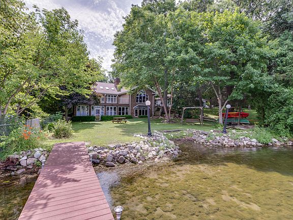 Absolutely Stunning Lakefront property in a private location on Paddock Lake with over 4,600 sq ft! Be prepared to be wowed by the views this property has to offer! Brick Ranch with vaulted ceilings and a walk-out basement is perfect for entertaining with sun deck and huge 3 season room. The finished walkout lower level is great for an ''in-law'' set up with its own full kitchen, bedrooms, family room with fireplace, laundry. Plenty of space for all the toys with a 2.5 attached garage and 3 car detached garage with 2nd story loft area.
