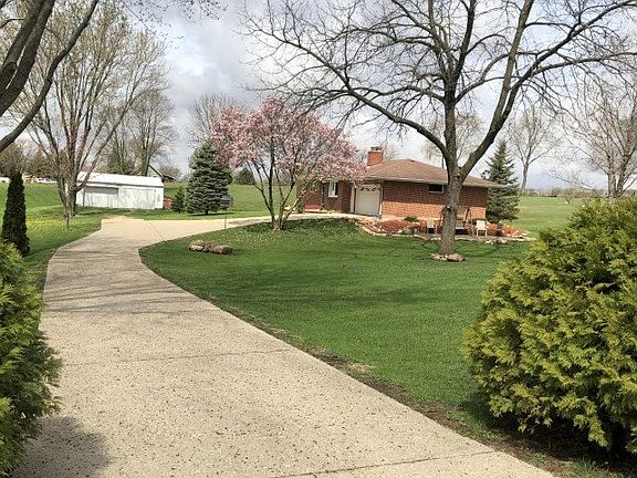 Winnebago schools! Sharp, BRICK ranch on 5.34 acres MOL zoned ag. Meticulously maintained. Country living exudes privacy, yet minutes to conveniences. Super kitchen, lots of cabinets, breakfast bar, garden atrium window, porcelein tile open to living room with oversized bay window and brick fireplace. Welcoming 4 season. Cathedral ceiling, skylight. Luxury, professionally designed bath with gorgeous tile. Main floor laundry room. All bedrooms on main level. All appliances. Rec room for entertaining, workshop and office as well. Lots of updates: windows 20/10/11, roof shingles 2005. Parklike setting with mature trees and loads of perennials gardens. 2 fire pits for outdoor entertaining. 29x30 outbuilding for the toys. Seeing is believing.