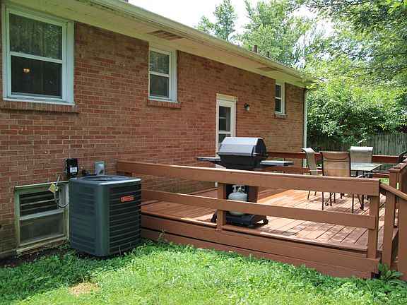 YOUR SEARCH FOR A 3 BEDROOM BRICK RANCH W/ PARTIALLY FINISHED BASEMENT UNDER $150,000 - IS OVER!! PLUS new electric furnace (gas at street per seller), new central air, new 200 AMP breaker box, rebuilt and resurfaced porch and steps, new railing and handrails on steps. House has hardwood floors (some need refinished/repair). Replacement windows on the first floor. Very nice fenced (chain link and privacy) back yard with refurbished and stained 16'6'' X 13' deck (deck furniture and grill remain) Lots of fresh paint. 1 car attached garage - large enough for possibly 2 cars tandem or 1 car and motorcycle, work bench, etc (dark stain in back of garage is where the oil furnace was sitting) The living room furniture (expect for the clock on the wall) is yours without ''the asking''. Convenient location!! - near Bardsttown Rd, Gene Snyder, shopping strip and restaurants. Large family room in basement (needs new flooring) plus laundry area. Hurry and you can have a Derby Party Sept 5th!!!!
