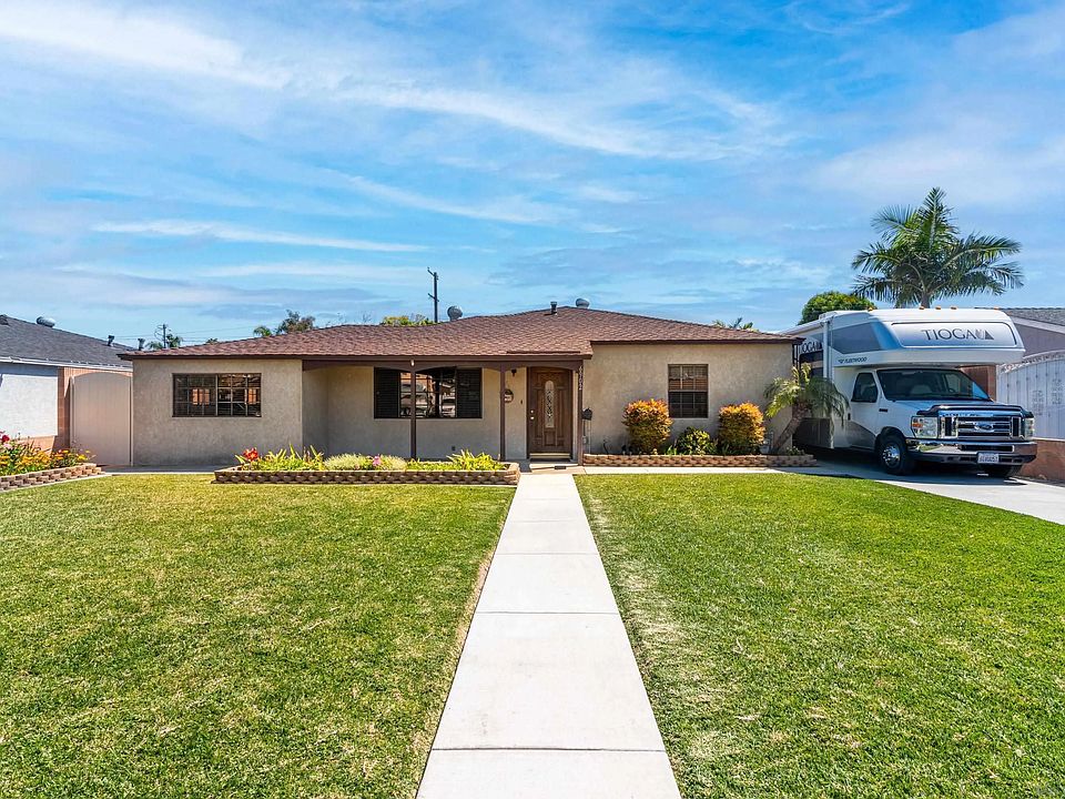 This impeccably maintained, single-level home located in Buena Park is on the market for the first time since 1979! While this home shows as a 2 bedroom, 1 bath, you will be pleasantly surprised to find an optional 3rd bedroom and half bath as well as a large den and dining area. Beautifully manicured lawns, both front and back, invite you to enjoy the outdoors with plenty of privacy. Enjoy freshly squeezed orange juice and creamy avocados from trees in the backyard. Wanna get away? The detached, 2-car garage is oversized and has a workshop area, where you can work on projects or have extra storage space. Speaking of storage, you can now save on RV storage fees and park on the side driveway. Need more room? There's potential for an ADU, should you wish to explore that. You will not find a better value in Buena Park, so please come see this home today!