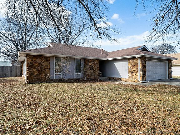 AWESOME investment home in highly sought after Jenks school district. This 3/2/2 stone home is on a large lot (0.29 acre) in a quiet neighborhood. Home features living room with fireplace and great room. Kitchen features beautiful countertops, lots of storage, a breakfast nook, AND the refrigerator stays!! This home also features a large primary bedroom with private bath, large walk-in closet, cute hall bathroom, and ALL bedrooms have walk-in closets! Home has BIG backyard with full privacy fence and is close to Page Belcher golf course, shopping, and close to highway for easy commutes. Home is being sold in "as-is" condition and has SO much potential. Come check it out today!