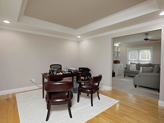 Gorgeous traditional home, loaded with updates, and move-in ready! Situated on a quiet cul-de-sac lot in desirable Woods of St. Thomas, the inviting foyer entry leads to open wood staircase with wrought iron balusters. Gleaming wood flooring is abundant throughout, including the formal living room, which makes a perfect study or music room, and the formal dining room, both which are finished in tray ceiling and dentil crown molding detail. The study leads to a cozy family room with gas or woodburning fireplace, built-in bookcases, and door with access to the outdoor living space. Perfect for entertaining, the family room is completely open to the remodeled eat-in kitchen with sleek cabinets and center island with breakfast bar, finished in granite. Sunny breakfast nook offers access to the expansive grilling deck, where there is room for plenty of seating and Alfresco dining! A guest powder room with pedestal sink completes the main level. Wood flooring continues from the staircase down the hallway on the second level, where you'll find a master bedroom suite that has been transformed into a retreat from the daily stresses! Spacious bedroom features tray ceiling detail, a separate den perfect for TV watching, home office or makeshift nursery, and huge walk-in closet with built-in design. A completely renovated spa-like bathroom features rich espresso finished double vanity with linen storage, soaking tub, shower with designer tile finishes, and separate water closet. Simply fabulous! The other three guest bedrooms share an updated bathroom with double bowl vanity, finished in tile. Of course the laundry is conveniently located on this level as well! Finished lower level offers a family room and separate recreation area, plus an exercise or hobby room, all finished in newer plank flooring. A rear entry garage affords an oversized parking area, which is great for basketball or cornhole play, and overlooks a beautifully landscaped lawn. Interior freshly painted, invisible fencing in the front and rear lawn and much more! Lots to love about this home--call for your private showing today!!