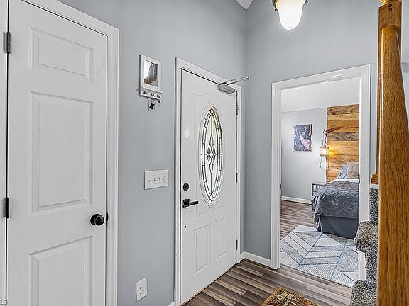 Cute and inviting 3-bedroom, 2-bathroom home on a .69-acre corner lot! Step into the kitchen featuring stainless steel appliances, stone backsplash above the stove, and convenient bar seating. The main-level primary suite includes a stylish accent wall, walk-in closet, and private access to a full bath that also connects to the kitchen. Upstairs, you’ll find two more spacious bedrooms—one with a double closet—joined by a Jack and Jill bathroom. Enjoy outdoor living on the deck, perfect for relaxing or entertaining. A small storage closet and a larger storage building with a lean-to add plenty of extra space, with a unique setup that could accommodate chickens or hobbies. This charming property blends comfort, updates, and function in a great setting—don’t miss your chance to call it home!