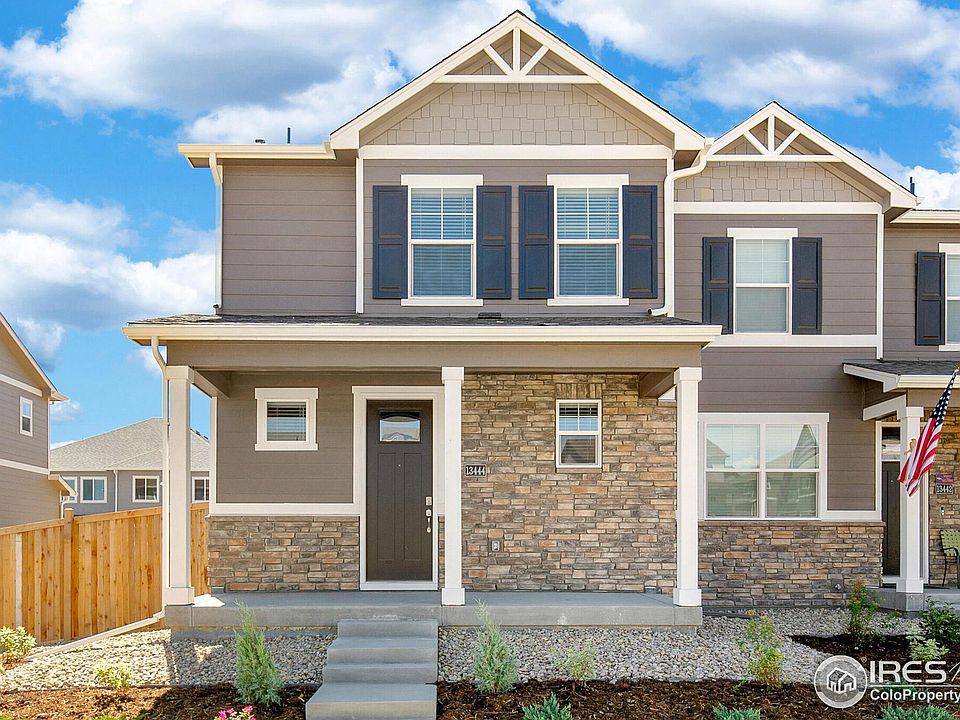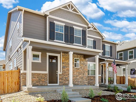 ***EXPECTED DELIVERY DATE: FEB*** The Muirfield floor plan is an ideal layout for those who desire modern, low-maintenance living. This duplex impressively boasts three beds and two baths with the added bonus of an attached two-car garage! Step into the main level of this home and experience its bright and spacious open-concept design. An upgraded kitchen features stainless steel appliances, a 5-burner gas range, and an island for additional space. Beautiful vinyl plank flooring is found throughout the first floor creating an inviting aesthetic in this well-designed home. The second level offers a number of amenities including a private primary suite with en suite bath that comes complete with double sinks and walk-in closet. Upstairs you can also find a loft, bedrooms, and laundry room, so no need to worry about running back and forth to complete your list of chores! With southern exposure windows poured in natural light, don't miss out on the opportunity to own this contemporary masterpiece! Plus, this fabulous neighborhood also boasts tons of nearby amenities like St. Vrain Valley schools, shopping, Carbon Valley Rec Center, and even Milavec Lake for all sorts of activity options! ***Photos are representative and not of actual home being built***