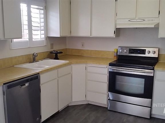 Just 1/8 mile from Cole Road, this GREAT west Boise location single-level duplex is perfect for owner/occupant, home business or rentals! Units are mirror-images. Updated flooring, with lots of light in the large kitchen, spacious living room, dual vanities in the bath, double car garage, and extra off-street parking. Spacious front yard gives a sense of privacy, and a fenced back yard. This property is accessed from side street, off Ustick Road.