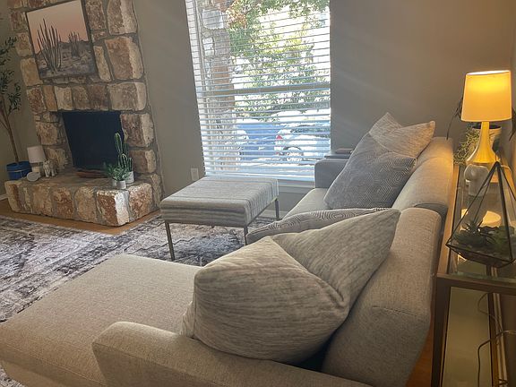Fully furnished WestElm dream condo! You'll feel right at home in this bright & spacious condo with a convenient location in south central Austin. This is not an apartment complex, the condo units are individually owned and feel more like a home flooded with light from the windows on all three sides of the condo. Shared amenities include community pool and clubhouse. Carefree living with luxury vinyl plank flooring throughout. Beautiful shaker style soft close cabinets in kitchen and bathroom, granite countertops, large kitchen and bathroom pantries, plus a washer and dryer in the unit! Enjoy cozy evenings by the beautiful stone fireplace with raised hearth or enjoy some fresh air on the ample outdoor deck. The spacious master bedroom includes an extra large walk-in closet and king size bed with high-end linens. The secondary bedroom has a queen size bed. You will love fall in love with this beautiful safe family neighborhood with many parks nearby plus there is ample off street parking. Just a 5 minute walk to the plaza directly behind the development with a Planet Fitness, restaurants, shopping, and recreation. Near by shopping (including HEB & Costco) dining, parks and entertainment. Just under 2 miles to Mopac & I-35. Live one block from the metro and 15 minutes to downtown.