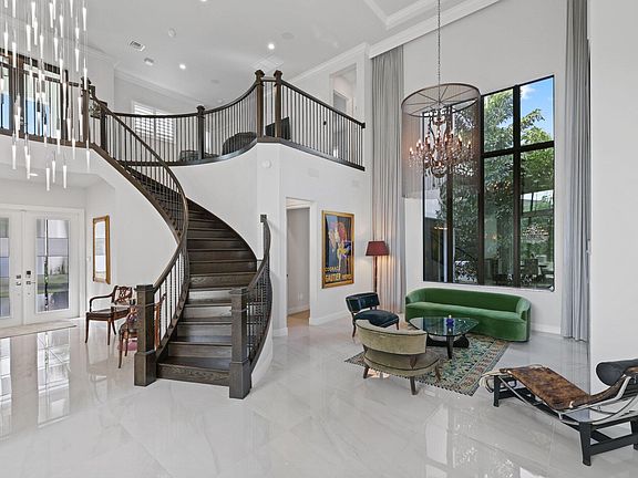 This Callahan model in Royal Palm Polo offers resort-style living on a corner lot w/ a side yard and lots of privacy. Featuring 5 spacious bedrooms, 5.1 bathrooms & office & loft. The grand entrance leads to soaring 23 ft ceilings & abundant natural light through large windows. The gourmet kitchen is equipped with Wolf & Sub-zero appliances, including a gas cooktop. The primary suite offers 2 primary bathrooms & walk-in closets & a serene covered patio overlooking the heated pool and private zen like yard. High end light fixtures & window treatments throughout. Located in the gated community of Royal Palm Polo in Boca Raton, this home is conveniently close to top schools and is a non membership community. Full House Generator & AC garage. See Video & Floor plan.