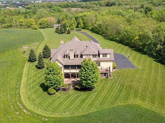 This elegant home is secluded on 40 acres surrounded by hundreds of acres protected by the McHenry County Conservation District. A long driveway leads to the brick and stone estate with 6,000+ sq. ft. of living space on 3 levels with primary bedroom on the main floor. Step inside the 2 story foyer and you will appreciate the exquisite finishes. The Great Room has one of the home's 5 fireplaces. The huge Kitchen is the place everyone will gather with big island with 9' solid walnut breakfast bar, granite counters, professional grade Viking oven-range and Viking refrigerator/freezer plus table space and built-in coffee bar. The adjoining Hearth Room is a comfortable place to relax with stone fireplace and doors to the deck and screened porch. The spacious formal dining room has hardwood floors and coffered ceiling. The library has French doors to give you privacy, floor to ceiling bookcase and fireplace. The primary suite is on the main floor with 2 walk-in closets. A sitting area looks out over the beautiful property has doors to the adjoining screened porch. The spacious bathroom has double vanity, jetted tub and walk-in shower. Upstairs are 4 bedrooms and 2 full bathrooms plus bonus loft area. The walkout lower level with 9' and 10' ceilings could be an in-law apartment. There is a full kitchen that is convenient when entertaining, a full bath, fireplace, family room, exercise room, office and storage room. Doors open out to the covered patio and backyard. The laundry room with sink is on the main floor. Mud room has convenient built-in cubbies. There is a 2 car garage and separate 1 car garage. The property is zoned A-1, agriculture with low taxes in unincorporated McHenry County. Animals and barns are allowed. There is plenty of open land for horse pastures. Much of the land is wooded and ideal for nature trails. Enjoy living in the country but close to schools and shopping, 10 minutes to I-90 and an hour to O'Hare.