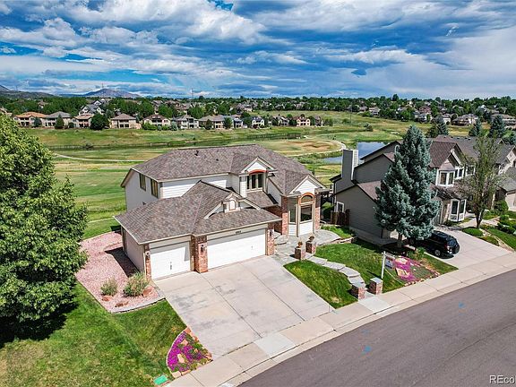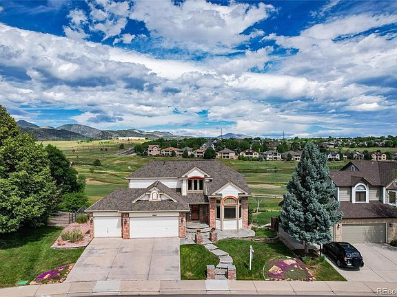 MUST SEE VIEWS! This spectacular 4,389 square-foot home is located on the Meadows Golf Course's 17th fairway with sweeping views from all three immaculately maintained levels. As you enter the home, you’ll be greeted by the vaulted entrance and grand winding staircase with wrought iron details. The family room with breathtaking views of the golf course and foothills,, vaulted ceilings, gas fireplace with blower, bright, natural light from the two-story windows, and will be your favorite gathering place. The kitchen features custom cabinetry, granite countertops, electric stove top, a wine fridge, and a spacious island that comfortably seats four. There is a large sliding glass door leading to a spacious deck off the kitchen with a sleek, modern railing that won’t obstruct the incredible views. Off the kitchen, is the formal dining room with ample space for all those family gatherings. The huge primary suite is conveniently located on the main floor. It will be your own private oasis with a five-piece bathroom that includes a custom tile walk-in shower, oversized soaking tub and a large walk-in closet with a custom closet system. There’s a mudroom/laundry room on the main floor as you enter from the pristine 3-car garage with epoxy floors and a ton of great storage. The upper floor features three large bedrooms and a full bathroom with a separate double vanity. As you head down to the finished basement, prepare yourself for an entertainer's dream! The light and bright walkout basement features an oversized family/great room with surround sound, which is open to a second large room with a large bar, and bar refrigerator. Step out onto the covered, paver patio with outdoor lighting, a huge, manicured yard, and you’ll be stunned by the views! This home also includes newer windows and a newer roof with an extended warranty. This beautiful home in the highly sought-after Canterbury neighborhood is perfect for entertaining and the views on this prime lot are a must-see!