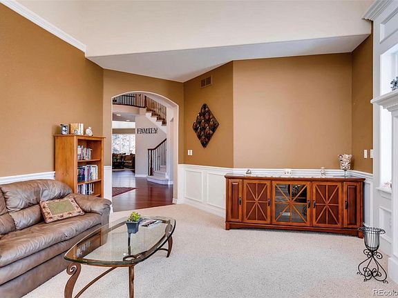 Gorgeous open floor plan in the coveted and well sought after neighborhood of Saddle Rock Golf Club South’s Tanglewood division. One of the largest floor plans in Tanglewood, boasting over 7000 sqft of space. Lots of natural light greets you in the two story foyer. There are bay windows in several rooms adding to the custom feel of this well maintained home. Beautiful gourmet kitchen, great for entertaining w/ Brazilian cherry wood floors, large pantry, double ovens, lots of storage and butler’s pantry. Open floor plan leads to a bright two story family room with cherry wood built-ins, stately office with French double doors, and two story living room worthy of your tallest Christmas tree. The second floor wow’s with a Grand Master bedroom with large sitting room wall of windows and coffee bar, Master bathroom is an Oasis!! All additional bedroom have en-suites and ceiling fans. Unfinished full basement is ready for your personal touch with 10’ ceilings and lots of natural light from the many garden level windows throughout. Hurry this home will go fast.