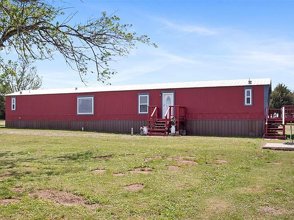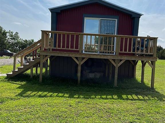 See this peaceful, country style home on 5 acres, pond on portion of the west side of the property. Check this extra income opportunity: there are 3 pads, 2 concrete/places for RV and camper parking with water, and hook-ups. This is a pretty piece of property. The RV pad has tall roof and extra patio. The mobile home has 3 decks; the bedroom on the west end of the home has a patio door and nice deck. Western style decor with tin metal features, scenic wall murals of mountains and horses! The shop at the front of the property is 30 x 40, has 2 roll up garage doors. The electric is 100 AMP and another 100 amp can be for 220, shop lights included. Mobile home on pier and block, with the Metal tongue. Under the west deck. All information deemed reliable, buyer or buyer's agent to confirm schools, total amount of land and other details. Verify financing availability before making appt to see.