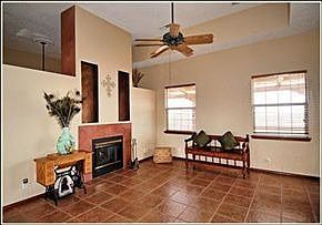 Listing agent: Sean Remington, Call 505-307-4006 for information. Congratulations, you just found your perfect home! Welcome to this tasteful southwestern property situated on a huge lot affording ample breathing room from neighbors on each side. Special features include large front entry courtyard, beautiful tile everywhere except bedrooms, formal and informal dining, two living areas, relaxing and low-maintenance two-way gas log fireplace, newer furnace and refrigerated air, regal wood trim, back yard access, and an expensive new covered portal in back!